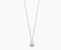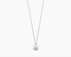 Collana corta in acciaio con ciondolo tondo e catena rolò con inserimenti in smalto bianco.