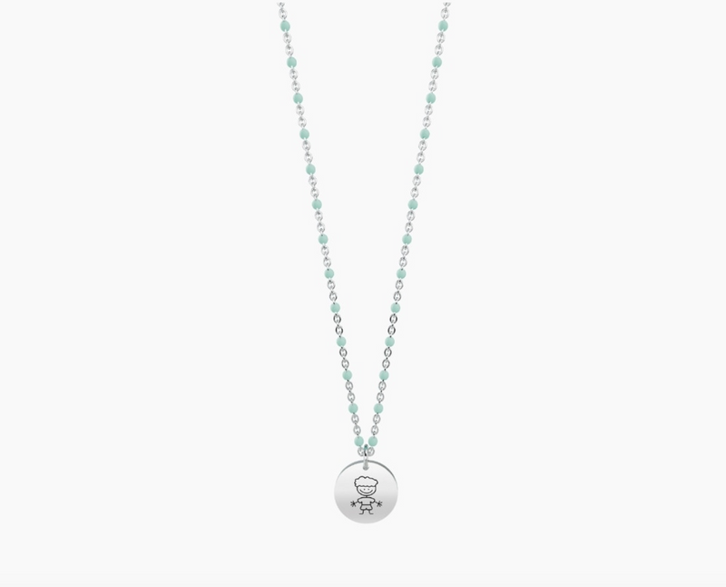 • Incisione smaltata sul ciondolo e inserimenti in smalto sulla catena