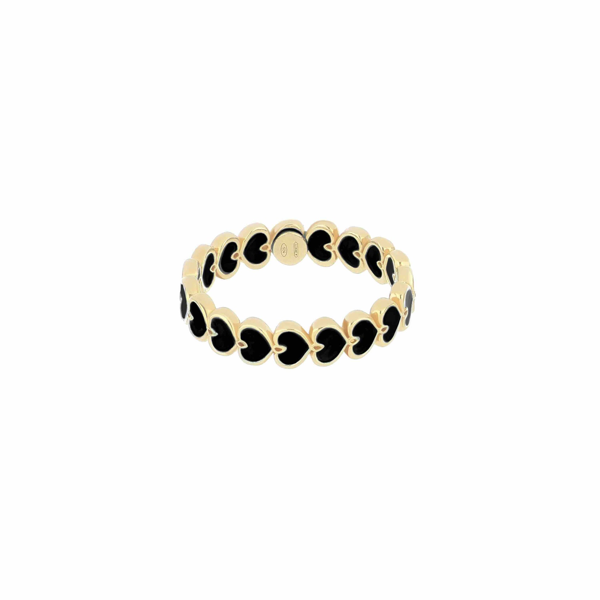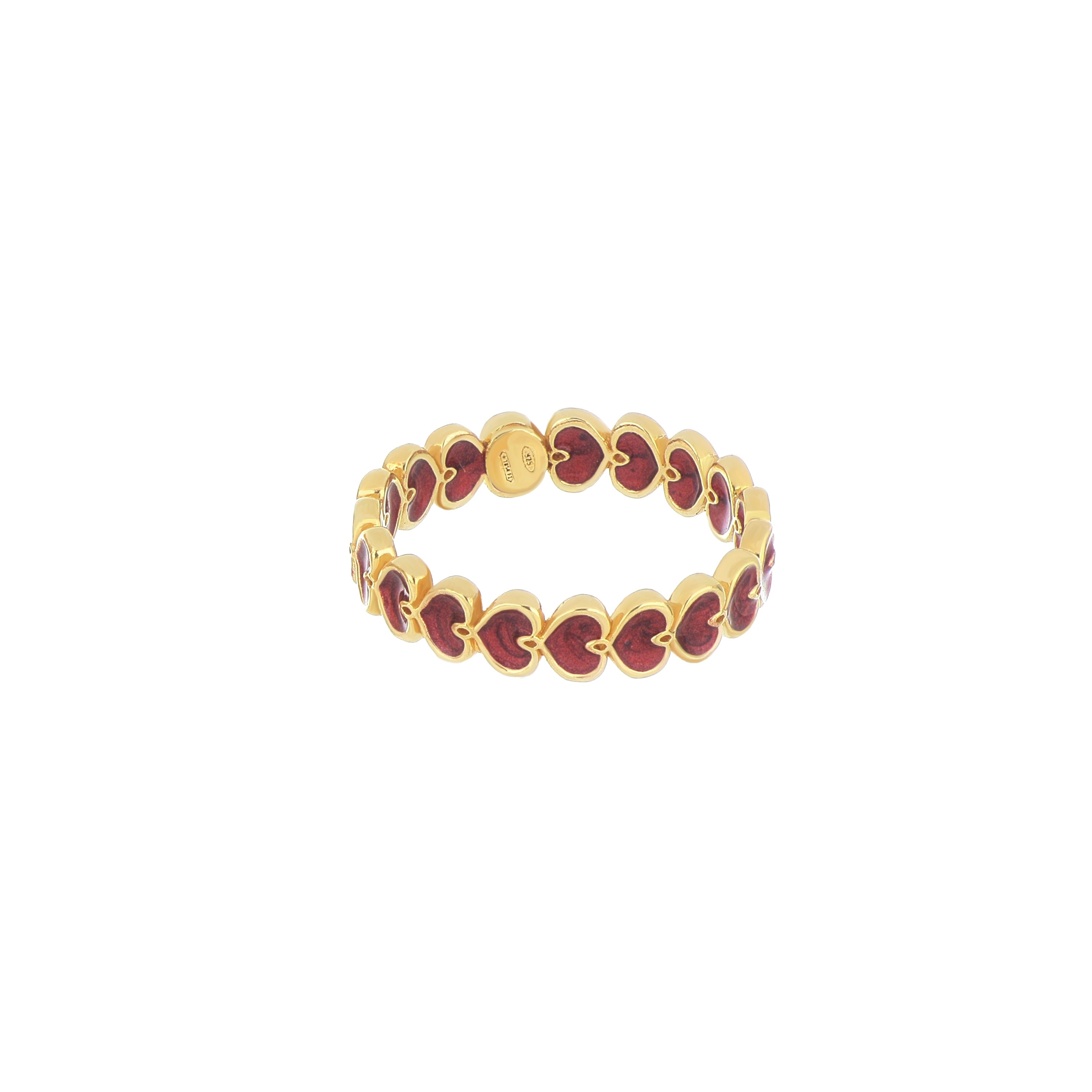 Anello realizzato in argento 925 con galvanica oro giallo ad alto spessore e resistenza con cuori Maman et Sophie smaltati in bordeaux.
