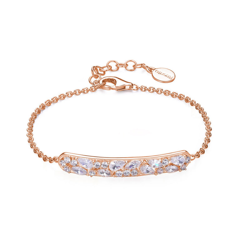 Bracciale GEMMA in argento 925/1000, galvanica oro rosa con centrale con cubic zirconia white