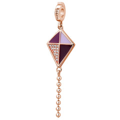 Charm in argento 925‰ a forma di aquilone, placcatura oro rosa, smalti colorati, 12 cubic zirconia bianchi.