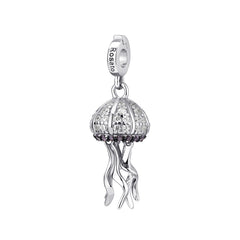 Charm STORIE argento 925/1000, galvanica rutenio, medusa con cz bianchi e ametista