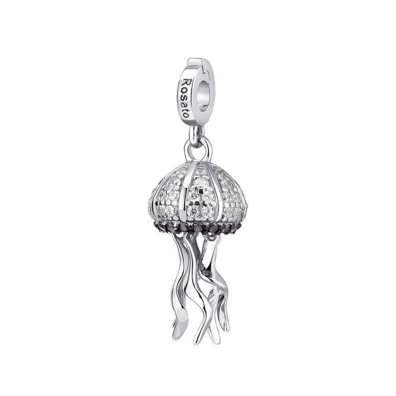 Charm in argento 925‰ a forma di medusa, placcatura rutenio, 48 cubic zirconia bianchi, 17 cubic zirconia ametista.