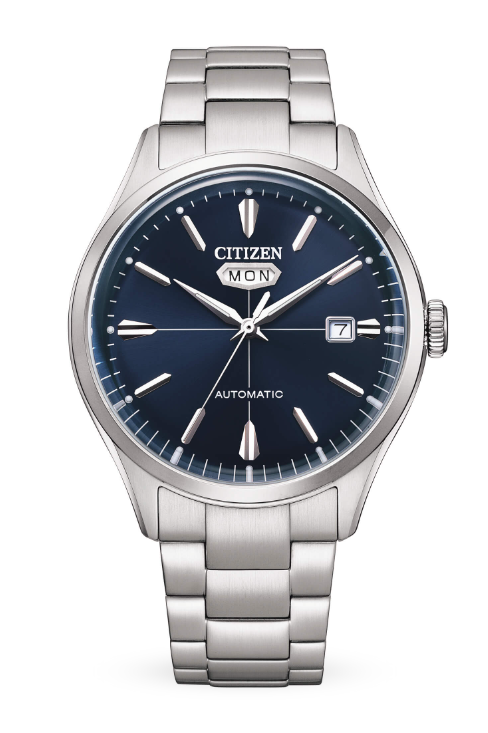 Meccanico a ricarica automatica con riserva di carica di 40 ore. Indicazione giorno/data con finestra sul quadrante a ore 12.