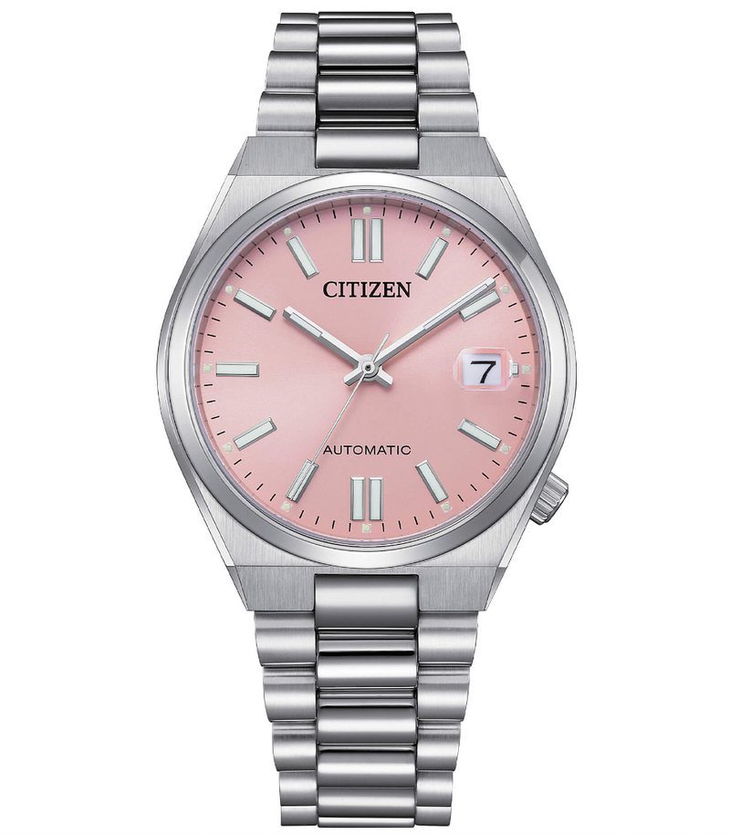 Cassa e bracciale in acciaio. Fondello con oblò trasparente e movimento a vista. Vetro zaffiro. WR 5 bar.