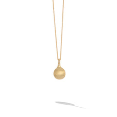 Delicato e perfetto per impreziosire ogni outfit, questo pendente monta una boule in oro giallo 18kt, finemente incisa a mano con l'antica tecnica del Bulino Millerighe. La catena regolabile e la contromaglia di Diamanti taglio brillante, lo rendono versatile ed elegante: un vero must have!