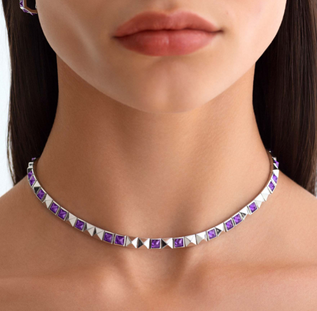 Collana choker CUBICA argento 925/1000 rodio e cz amethyst