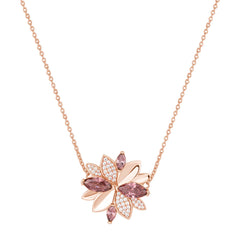 Collana fiore GAIA argento 925/1000, galvanica oro rosa, cz bianchi e rodolite