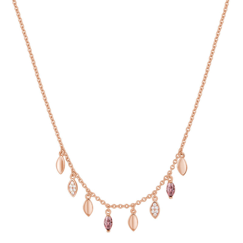 Collana GAIA argento 925/1000, galvanica oro rosa, cz bianchi e rodolite