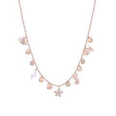 Collana INTO THE BLUE argento 925/1000, galvanica oro rosa, smalto bianco e cz bianchi