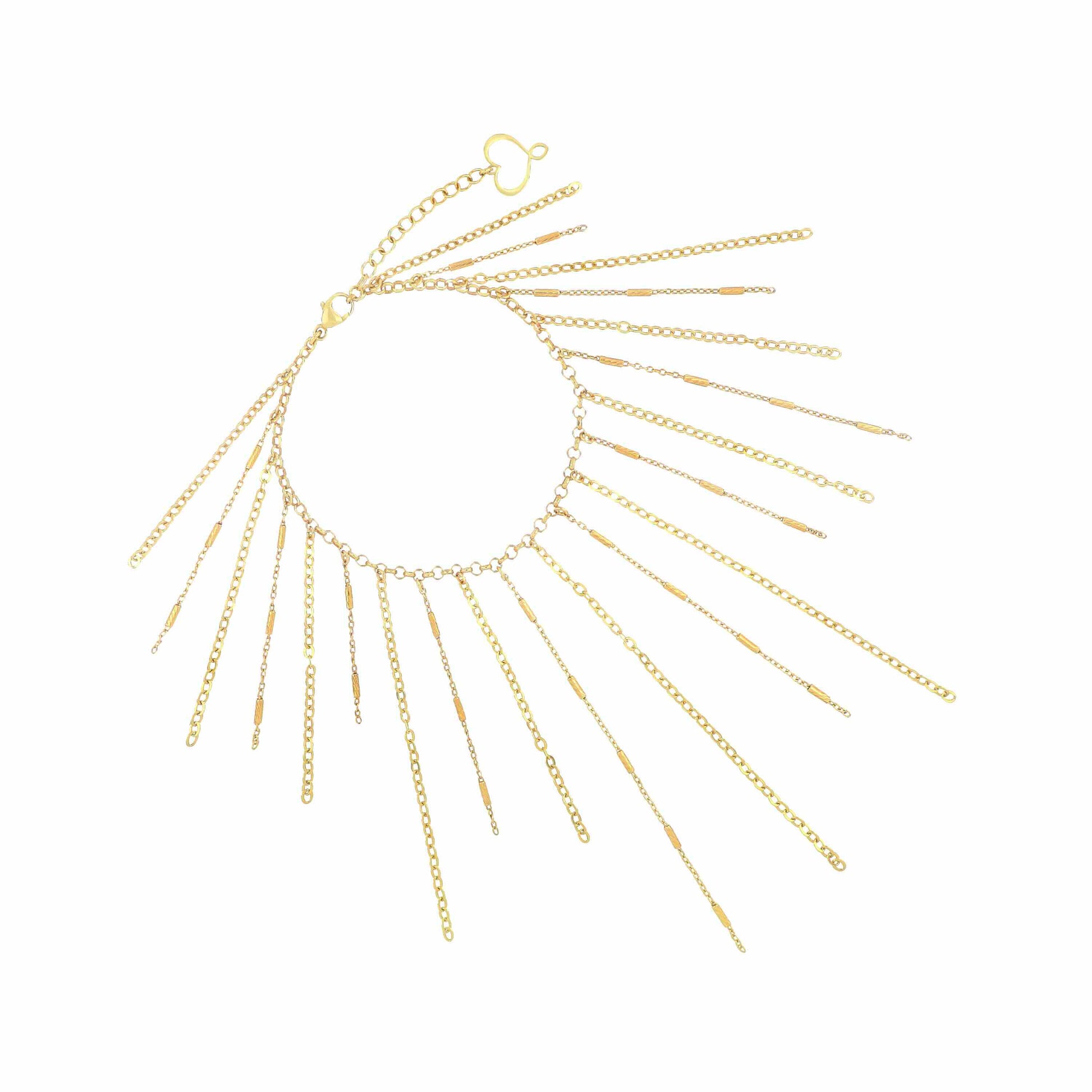 Presenta una cascata di catene pendenti e cuore maman.