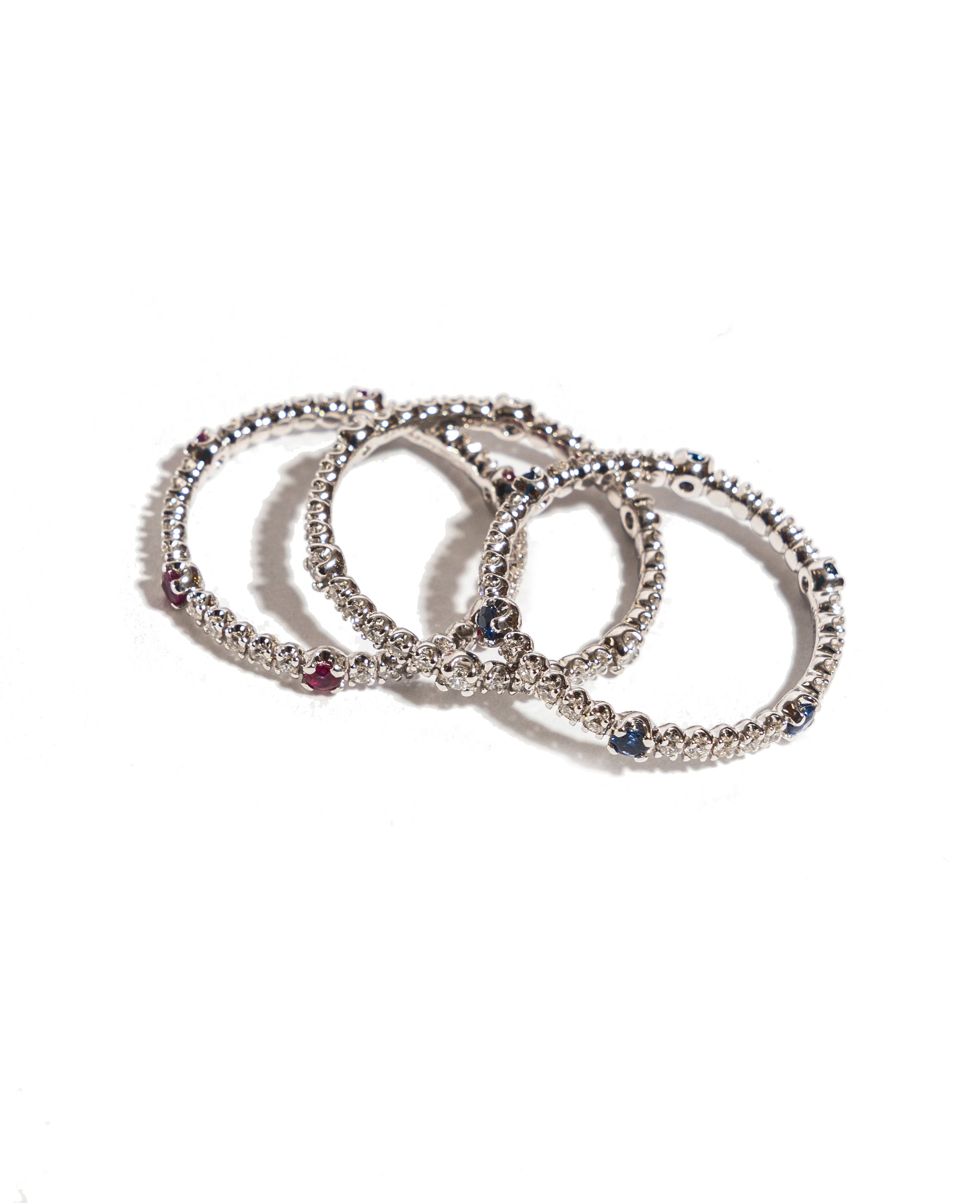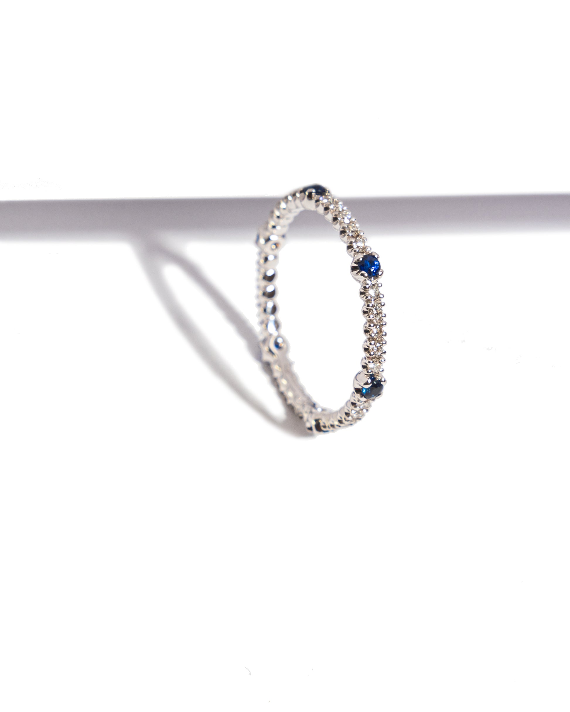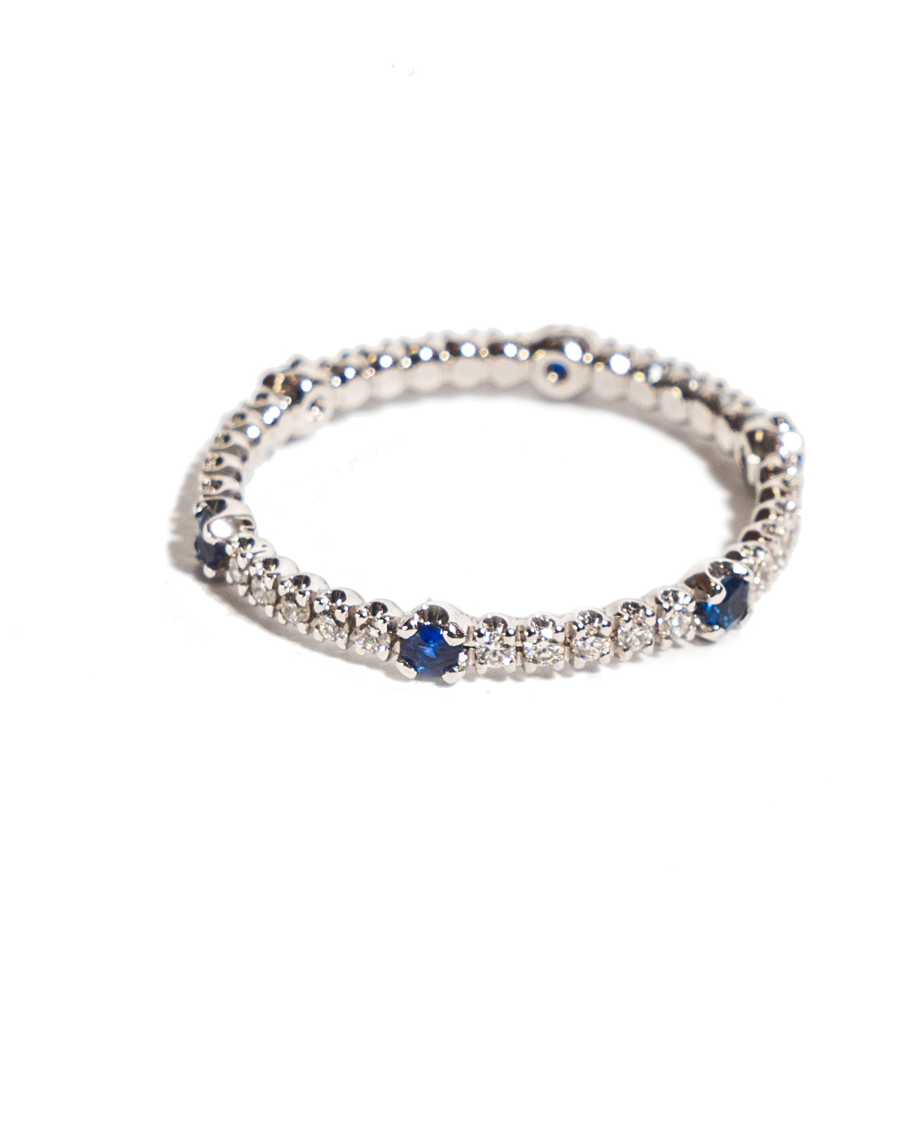 Anelo riviera etherné oro bianco zaffiri blu ct. 0,24 e diamanti taglio brillante ct. 0,26.