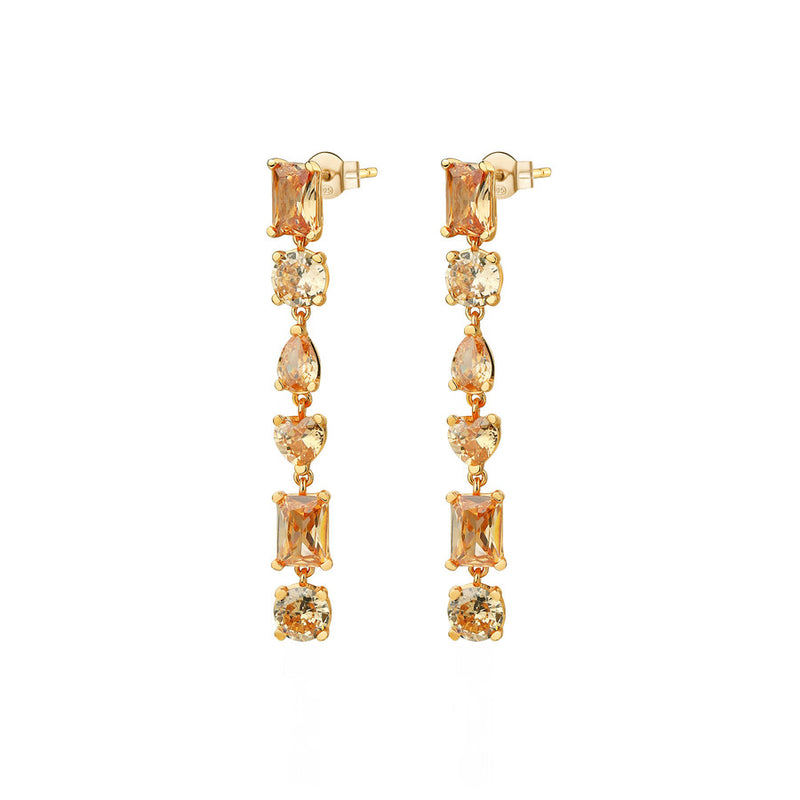 Orecchini pendenti GEMMA, argento 925/1000, galvanica oro giallo e cz champagne