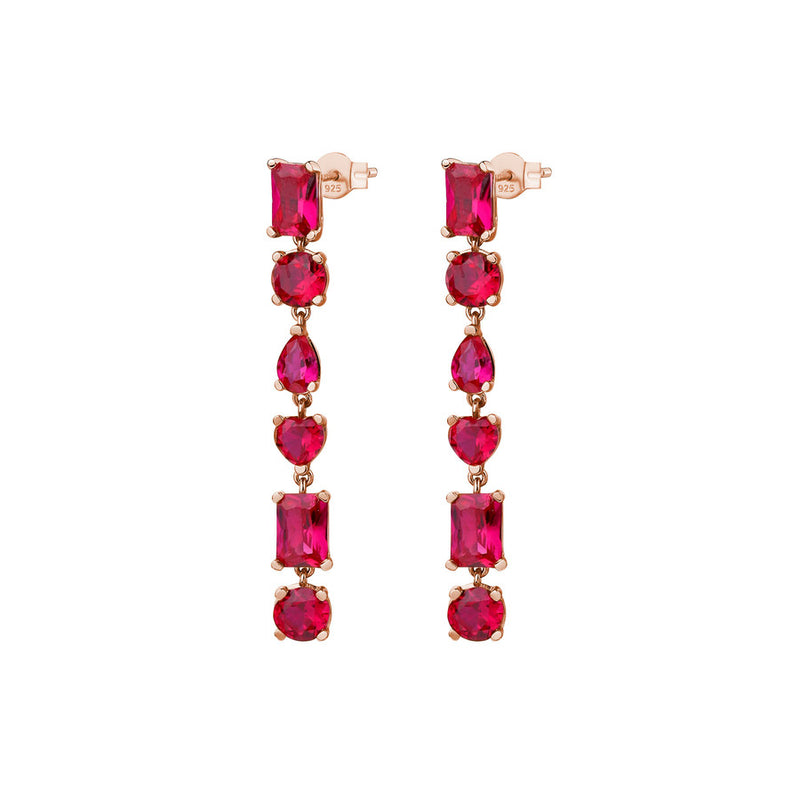 Orecchini pendenti GEMMA, argento 925/1000, galvanica oro rosa e cz ruby