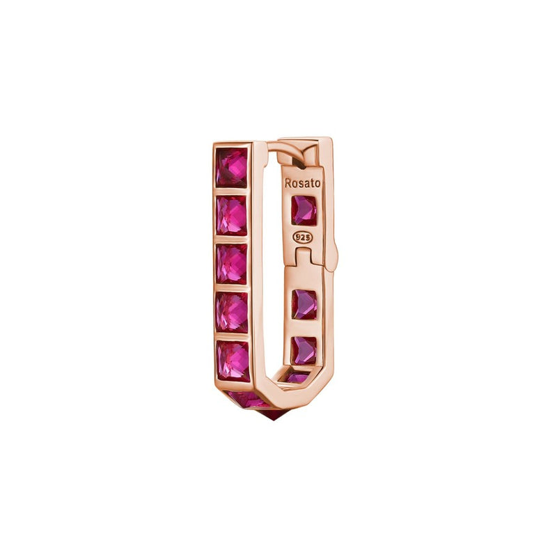 Orecchino a U CUBICA argento 925/1000, galvanica oro rosa e cz ruby
