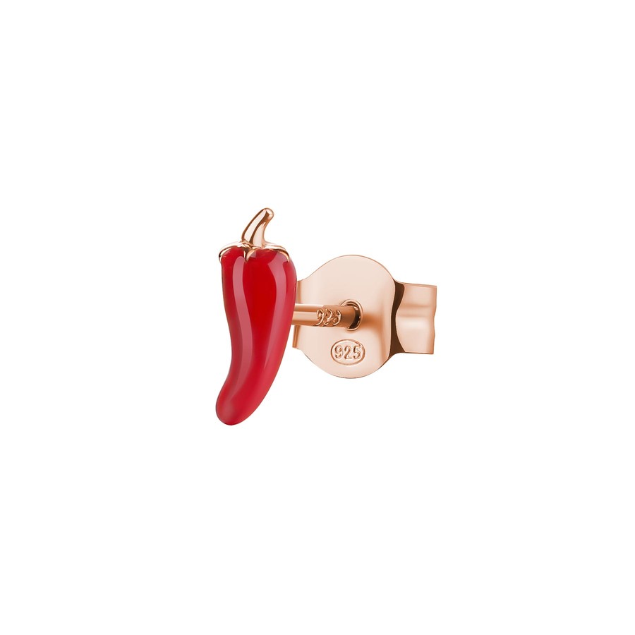 Orecchino ALLEGRA argento 925/1000 galvanica oro rosa, a forma di peperoncino, smalto rosso