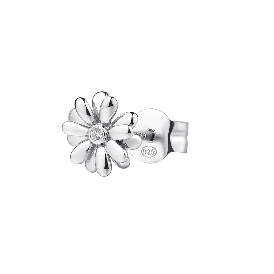 Orecchino ALLEGRA argento 925/1000 rodiato, a forma di margherita, 1 zircone bianco