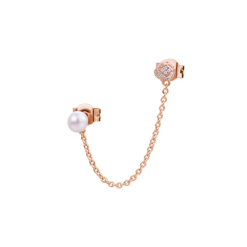 Orecchino AZZURRA argento 925/1000, galvanica oro rosa, perla naturale e cubic zirconia bianchi