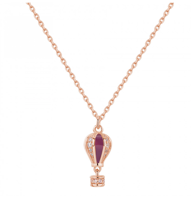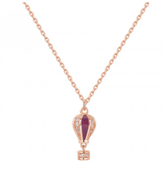 Collana corta collezione Aria in argento 925‰ con pendente a forma di mongolfiera, placcatura oro rosa, smalti colorati, 28 cubic zirconia bianchi.