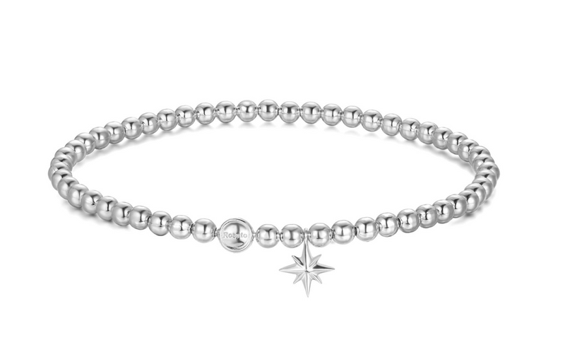 Bracciale in argento 925‰ con sfere e pendente a forma di stella polare. Utilizzabile per mettere i charms